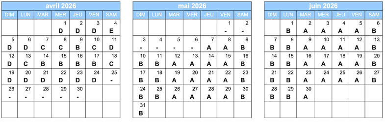 | Départs quotidiens 2026 | ||